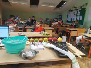 Djeci je najzanimljivija aktivnost bila pečenje pite s našom kuharicom Đurđom Tomorad koja je izrazito strpljivo, zajedno s djecom, ispekla vrlo ukusnu pitu od jabuka. Učenici su sudjelovali u svim fazama pripreme – od guljenja jabuka do slaganja tijesta po receptu. Kad se pita ispekla miris se proširio školom i svima koji su bili u poslijepodnevnoj smjeni su rasle zazubice. Pitom smo počastili ravnatelja i sve zaposlenike koji su bili u školi – pohvale su prštale na sve strane. Velika hvala teti Đurđi.